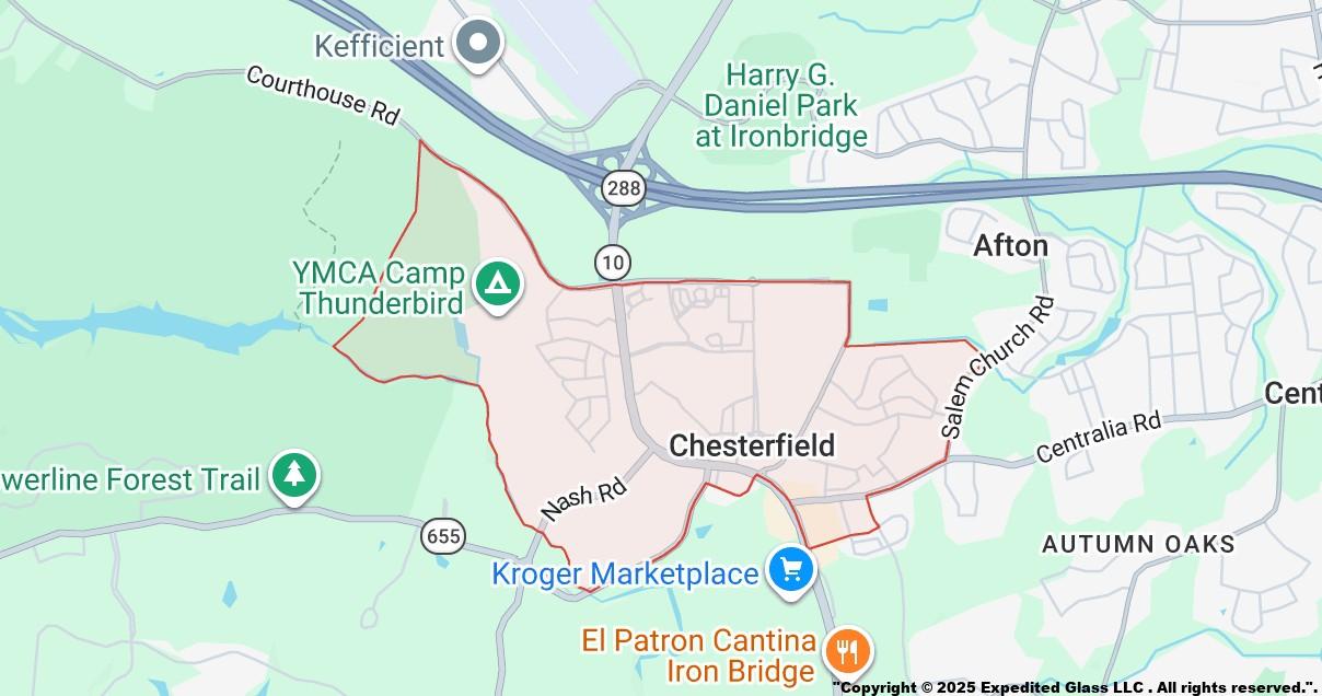 Expedited Glass provides 24/7 Emergency Board Up Services in Chesterfield VA. Our local team will show up in 45 minutes or less. In fact, not only we will insure no further damage is done to your store, we will also expedited the glass replacement