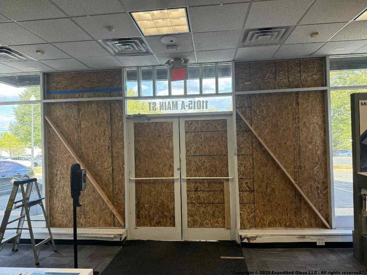 Expedited Glass provides 24/7 Emergency Board Up Services in Haymarket VA. Our local team will show up in 45 minutes or less. In fact, not only we will insure no further damage is done to your store, we will also expedited the glass replacement
