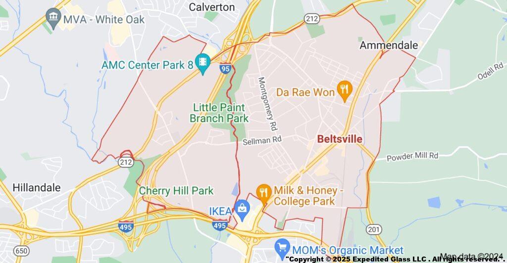 Expedited Glass provides 24/7 Emergency Glass repair services in Beltsville MD. Our local team will show up in 45 minutes or less after receiving your call. Often we provide same day service for both commercial & residential properties. In addition, we provide emergency board up services if needed.