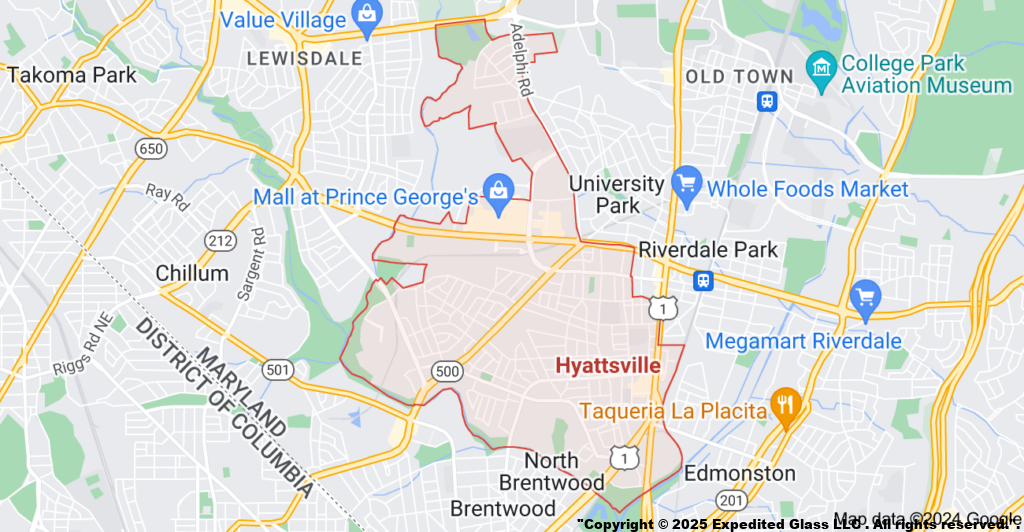 Expedited Glass provides 24/7 Emergency Glass repair services in Hyattsville MD. Our local team will show up in 45 minutes or less after receiving your call. Often we provide same day service for both commercial & residential properties. In addition, we provide emergency board up services if needed.