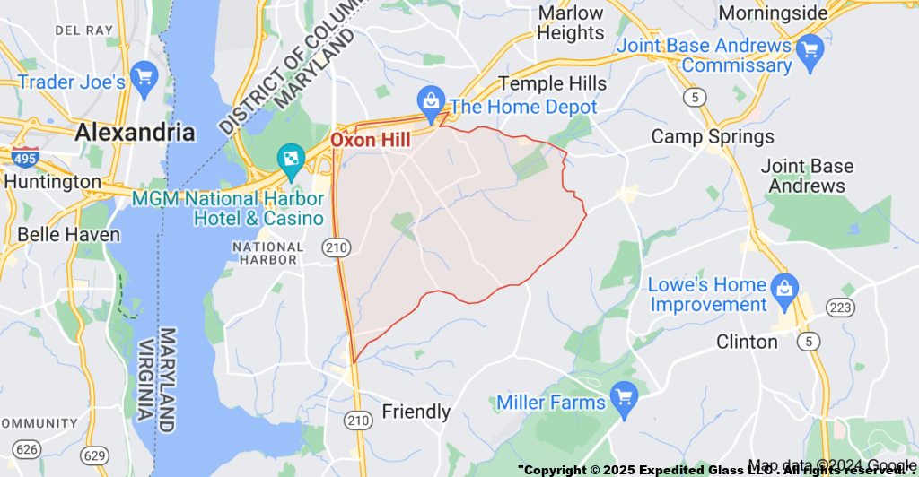 Expedited Glass provides 24/7 Emergency Glass repair services in Oxon Hill MD. Our local team will show up in 45 minutes or less after receiving your call. Often we provide same day service for both commercial & residential properties. In addition, we provide emergency board up services if needed.