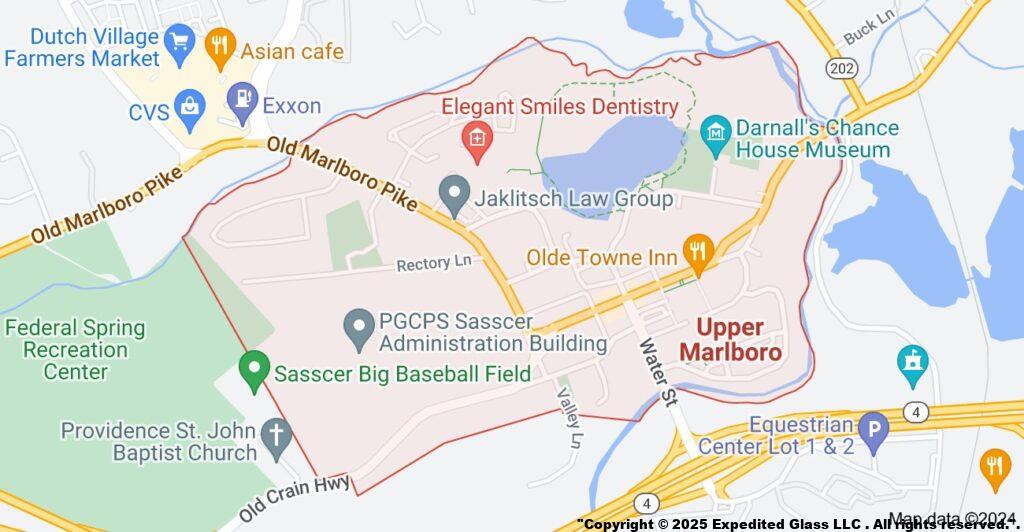 Expedited Glass provides 24/7 Emergency Glass repair services in Upper Marlboro MD. Our local team will show up in 45 minutes or less after receiving your call. Often we provide same day service for both commercial & residential properties. In addition, we provide emergency board up services if needed.