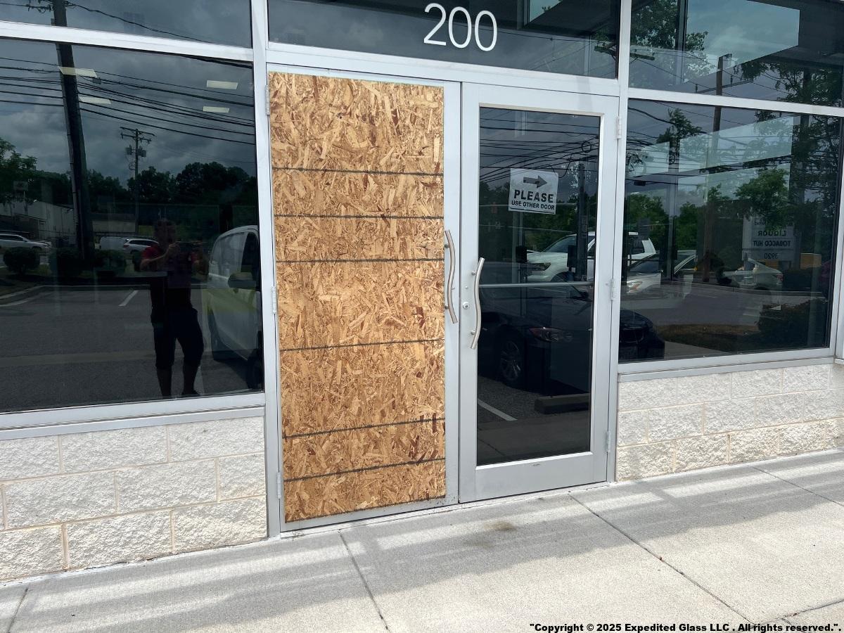 We carry different standard size glass door. We will save you the cost of the emergency board up and proceed with the glass replacement.