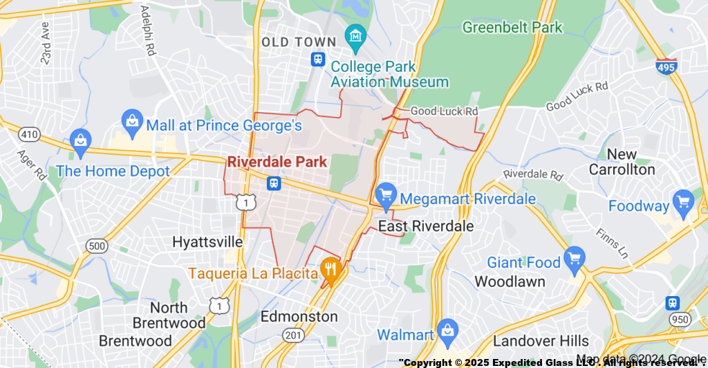 Expedited Glass provides Doors, Windows Glass & storefront repair in Riverdale Park MD. In fact, We cover Commercial & Residential properties. We often provide same day service. In addition, we provide storefront repair & replacement